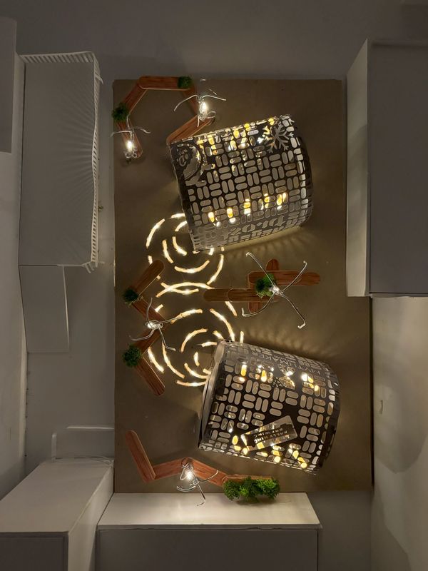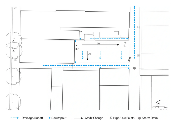 The site analysis portion was completed as a class, but the design process was completed individually. This design showcased the various ways that aluminum can be used to connect the biking community and the beer community through abstract bike chains and oversized aluminum cans. Due to the taller buildings surrounding the site, lighting was essential. Sustainable design elements led the way in this fun and artistic plan, incorporating the required storage for 80 bicycles.